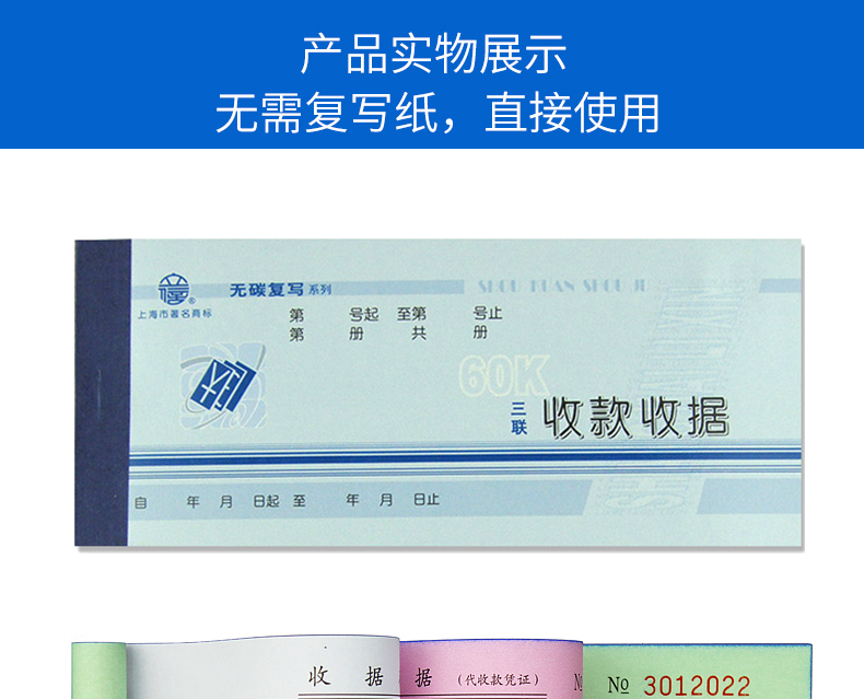 立信WT113-60-3收款收据 三联收据 立信收据无碳复写...