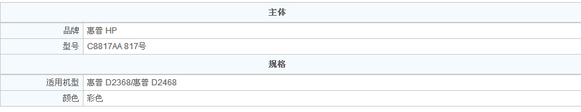 惠普喷墨打印机墨盒 817彩色墨盒(CC8817A)