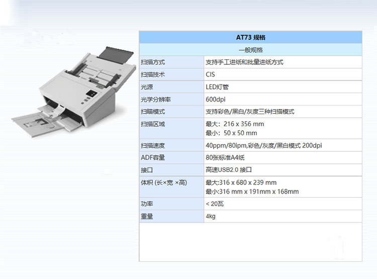 虹光(Avision) 高速扫描仪AT73 馈纸式 扫描速度...